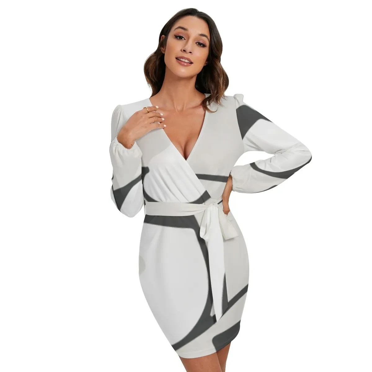 Motiff Long Sleeve Dress with Waist Belt