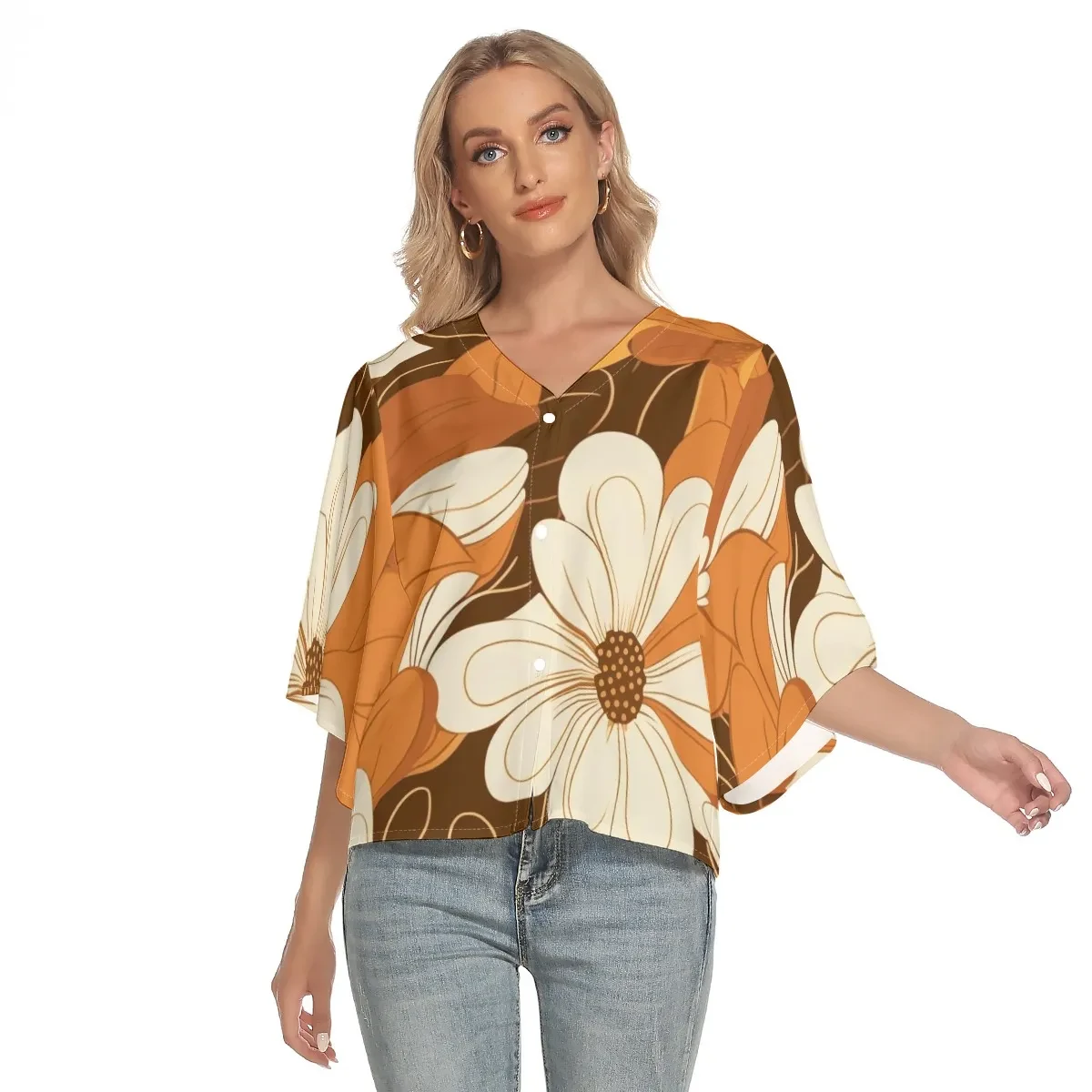 Looking for that perfect piece to stand out in the crowd? Look no further than the elegant bat sleeve v-neck top! This stylish blouse is the ultimate statement piece that will make you shine wherever you go. Its unique design and flattering silhouette will have you feeling confident and classy at any event. Pair it with your favorite jeans or dress it up with a skirt for a versatile and chic look. With this blouse, you'll be turning heads and receiving compliments left and right!