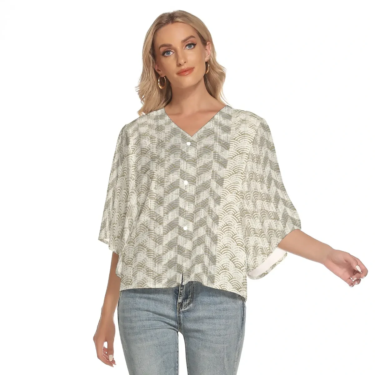 Looking for that perfect piece to stand out in the crowd? Look no further than the elegant bat sleeve v-neck top! This stylish blouse is the ultimate statement piece that will make you shine wherever you go. Its unique design and flattering silhouette will have you feeling confident and classy at any event. Pair it with your favorite jeans or dress it up with a skirt for a versatile and chic look. With this blouse, you'll be turning heads and receiving compliments left and right!