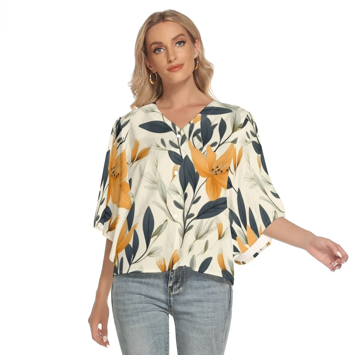 Looking for that perfect piece to stand out in the crowd? Look no further than the elegant bat sleeve v-neck top! This stylish blouse is the ultimate statement piece that will make you shine wherever you go. Its unique design and flattering silhouette will have you feeling confident and classy at any event. Pair it with your favorite jeans or dress it up with a skirt for a versatile and chic look. With this blouse, you'll be turning heads and receiving compliments left and right!