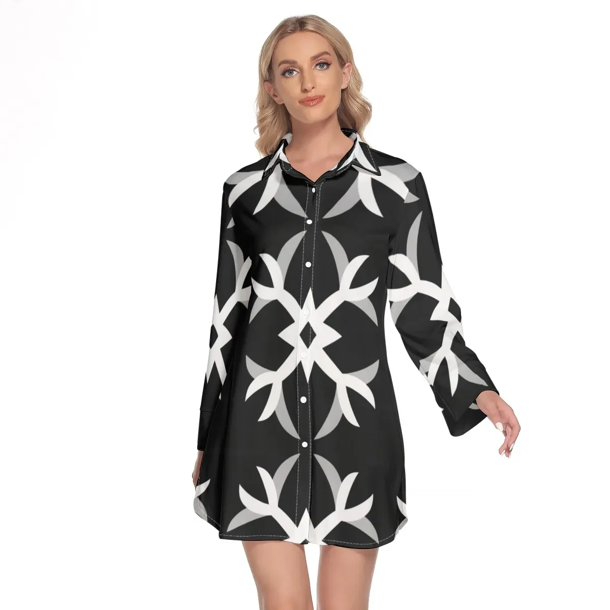 The overall relaxed I-line shirt dress looks neat and has a great vertical effect. The long length covers the hips of your body.The simple design eliminates unnecessary decoration, so you can enjoy a variety of expressions depending on your outerwear and accessories. You can tie the waist ribbon and wear it by itself. It is also recommended to wear it with denim as a top.