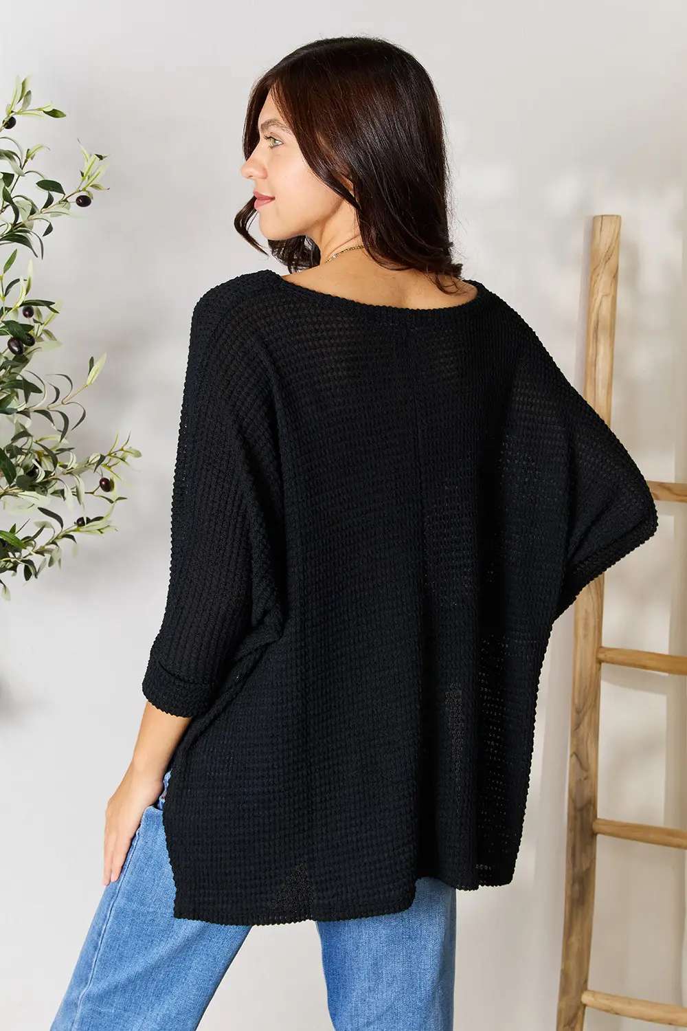 Zenana Full Size Round Neck High-Low Slit Knit Top